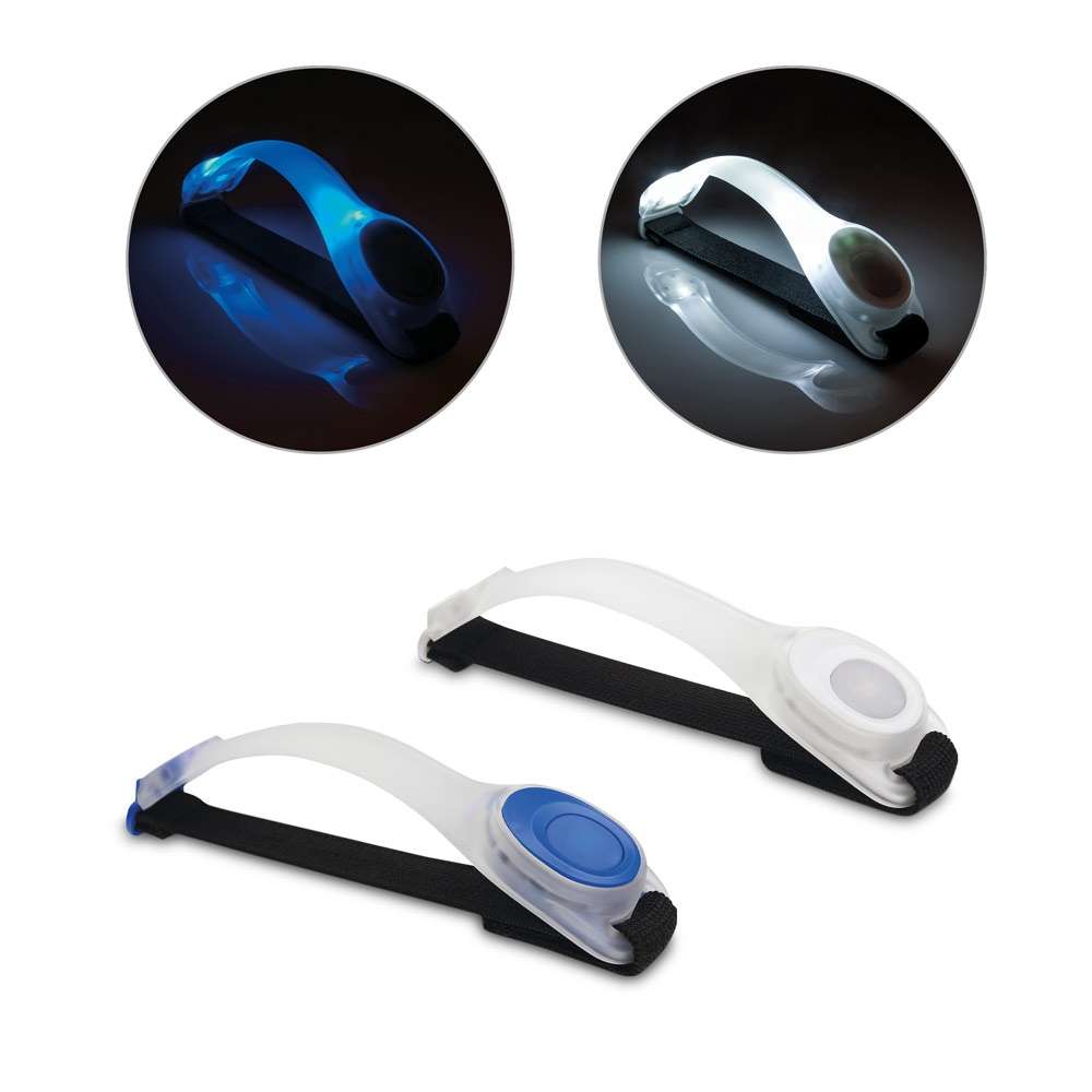 Cinturino in silicone con 2 LED e fascetta elastica con velcro. Le batterie a bottone (2x) sono incluse. cinturino in silicone 185 x 13 x 37 mm, cinturino elastico 220 x 20 mm
