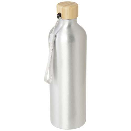 Borraccia in alluminio riciclato certificato RCS con un elegante coperchio in bambù. Questa borraccia leggera e a parete singola è dotata di un cinturino che ne facilita il trasporto. Il bambù proviene da fonti sostenibili, responsabili dal punto di vista ambientale e sociale. Capacità: 770 ml. Lavarla solo a mano.
