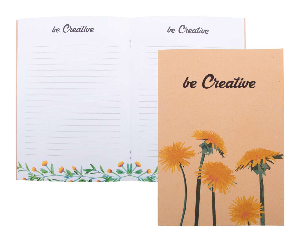 Quaderno nel formato A5 personalizzabile, con copertina in carta kraft riciclata e 32 fogli in carta riciclata. Il prezzo include la stampa a colori sull'esterno della copertina e la stampa di un logo a colori su tutte le pagine interne. MOQ: 100 pezzi.