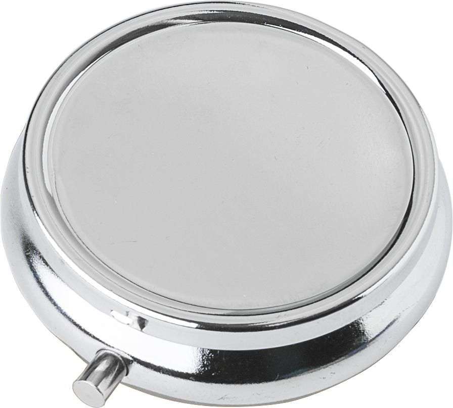 Portapillole 3 scomparti in ferro, interno in PP, interno lucido utilizzabile come specchio, confezionata singolarmente in una scatola bianca