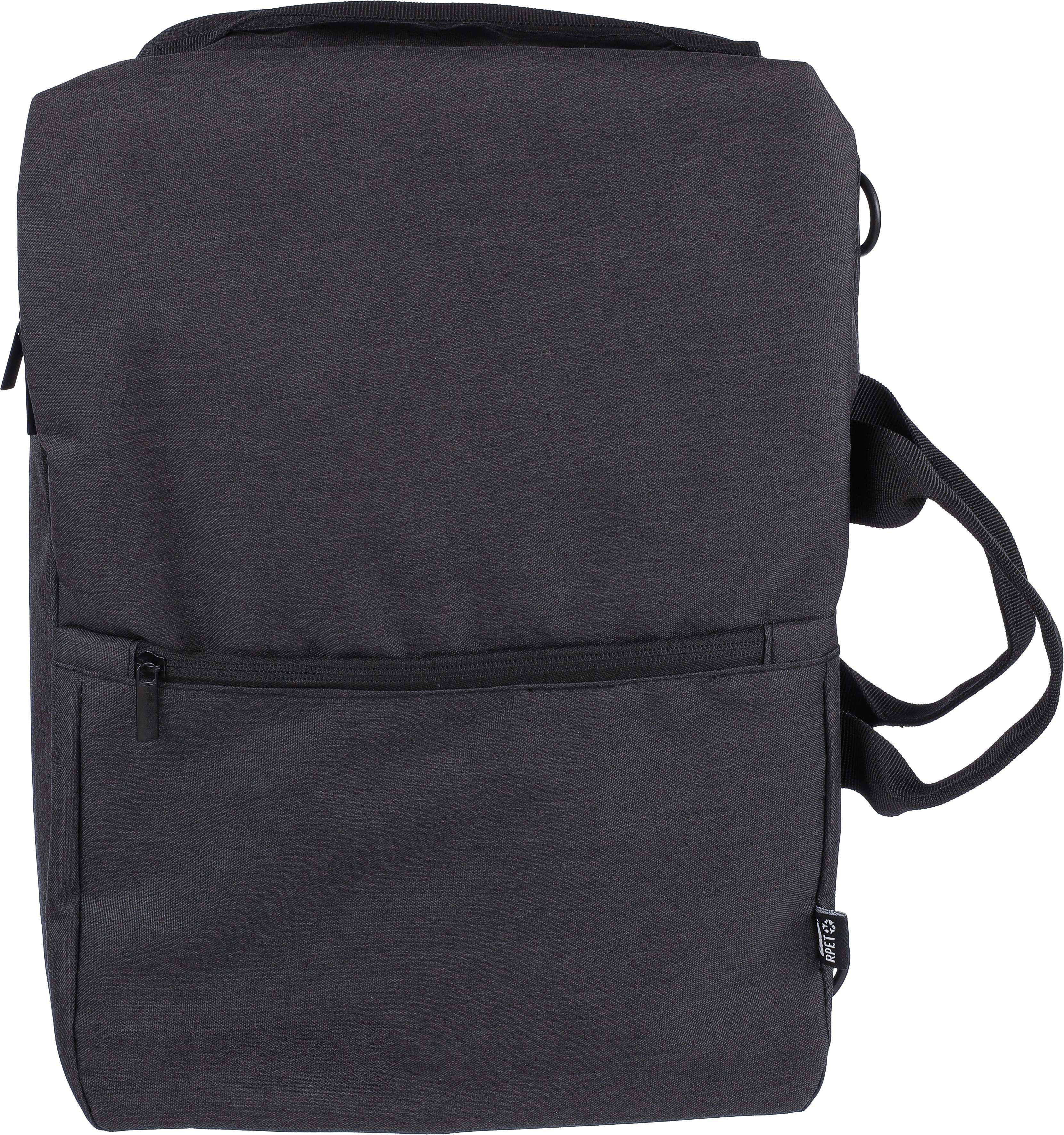 Zaino portacomputer in poliestere rPET 300D con fodera interna 210D, adatto al trasporto di laptop fino a 15 pollici e conforme alle dimensioni cabina. Presenta spallacci regolabili, manici laterali, retro imbottito e ventilato, passante superiore, cinture nascoste dietro l’imbottitura e scomparti con chiusura in velcro e zip. Capacità di carico fino a 8 kg, con etichetta rPET inclusa.