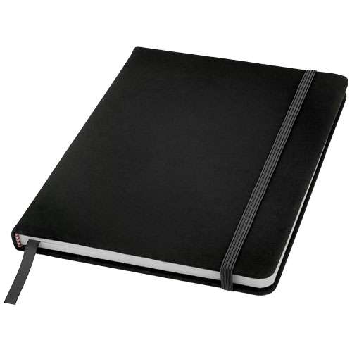 Notebook A5 con chiusura elastica e segnapagina coordinati. Composto da 96 pagine bianche (60g/m²).