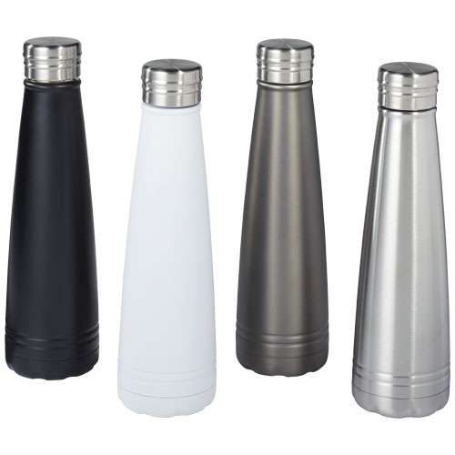 Bottiglia Duke, parete doppio strato 18/8 gradi in acciaio inox con isolamento sottovuoto. L'interno della parete è placata in rame che permette di mantenere fredde le bevande per 12 ore, quelle calde per 48 ore. Capacità 500ml. Confezione regalo Avenue.