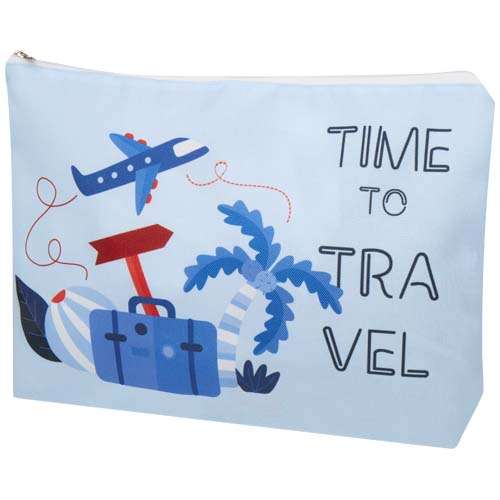 La borsa da viaggio in formato grande Ayla con stampa a sublimazione è realizzata in poliestere riciclato al 100% ed è disponibile con cerniera di colore bianco o nero. Prodotta in Europa.