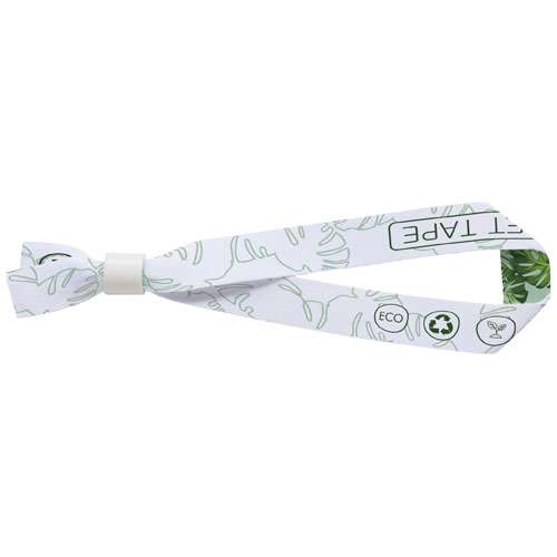 Braccialetto El per festival in PET riciclato con chiusura di sicurezza in PET riciclato. Disponibile con stampa full color su uno o due lati. Per stampa su due lati è possibile scegliere tra sublimazione standard o piazzata (piazzata significa che la stampa sarà allineata su entrambi i lati). Il gancio di sicurezza one-way impedisce che l'articolo venga rimosso, caratteristica che lo rende il pass di sicurezza perfetto per feste ed eventi.