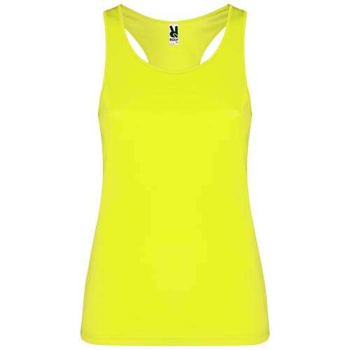 Tessuto tecnico, traspirante, facile da lavare e si asciuga rapidamente. Giromanica e scollatura a costine. Incrociato sulla schiena e con cuciture laterali. Etichetta rimovibile.