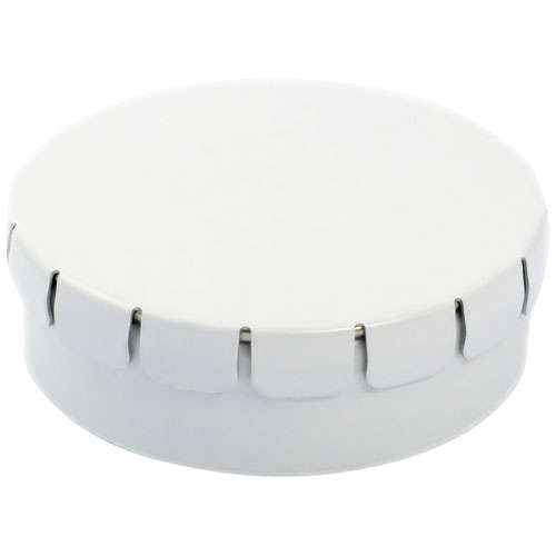 Caramelle al gusto cannella in contenitore di latta con facile apertura a scatto. Il contenitore può essere ordinato in una vasta gamma di colori e riempito con caramelle dai gusti diversi: mentine tradizionali, mentine extra forti, mentine senza zucchero, gelatine di frutta, caramelle a forma di cuore e al gusto fragola, cannella, caramelle al limone e menta o cioccolatini. Il coperchio può essere decorato con una stampa digitale a colori.