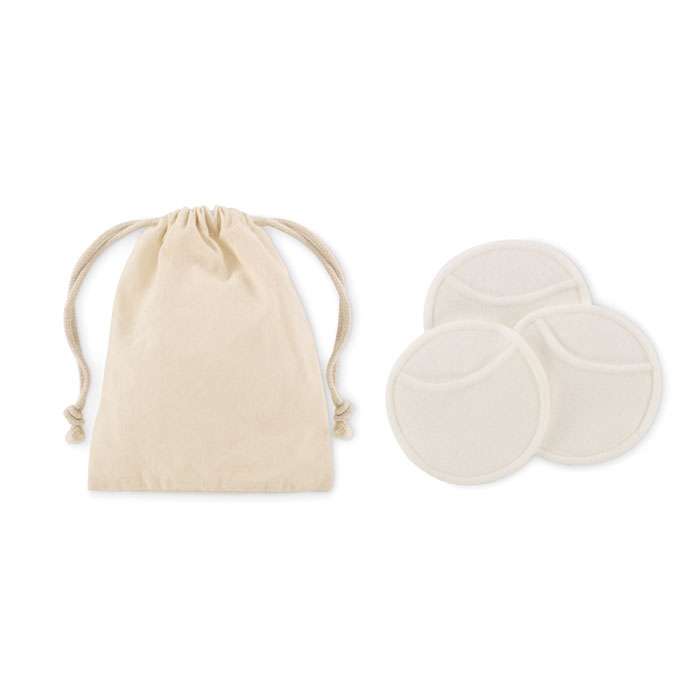 3 pezzi di morbidi dischetti per la pulizia del viso riutilizzabili e lavabili (diametro 8 cm) in fibra di bamboo al 70% e cotone al 30% in un sacchetto di cotone.