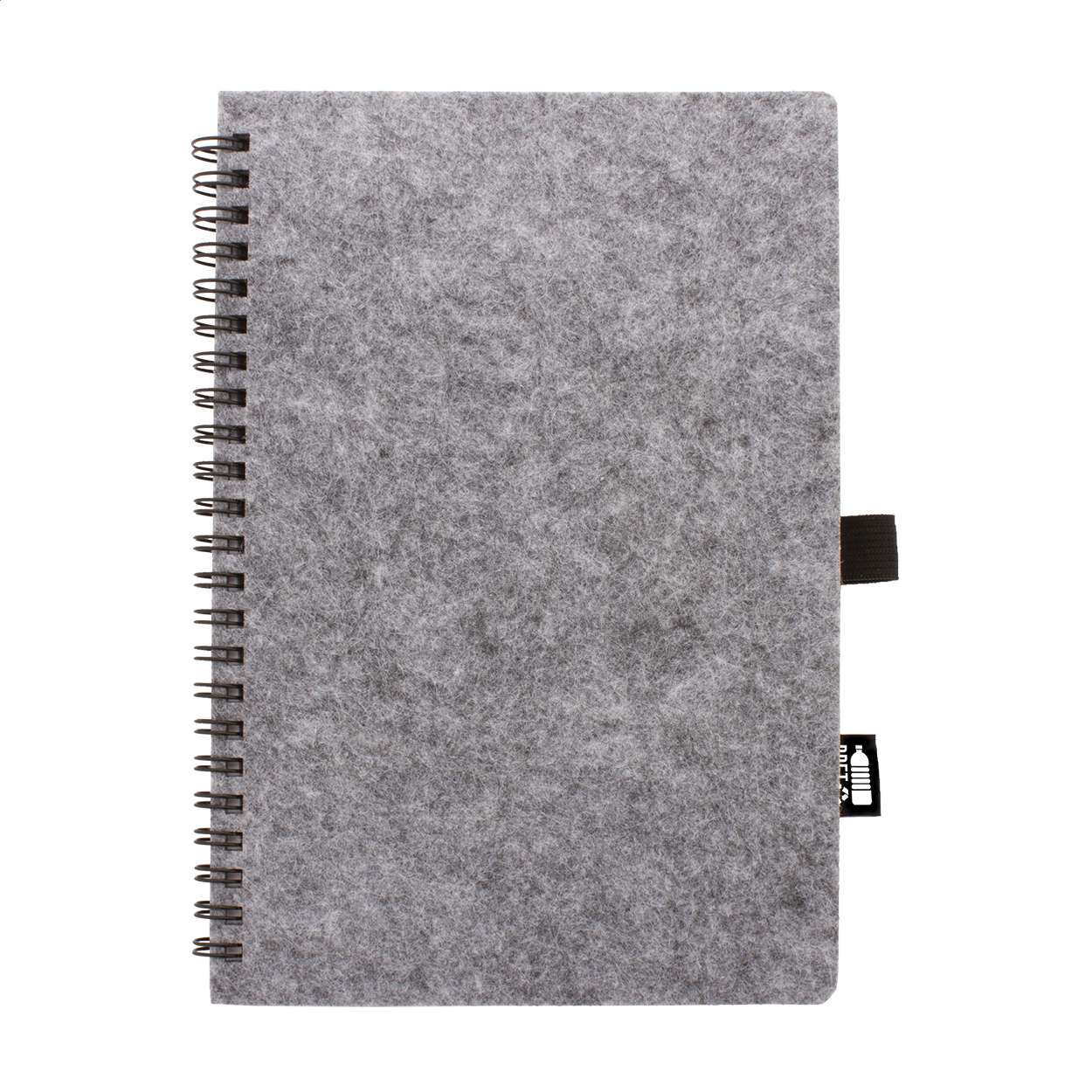 Quaderno a spirale formato A5, con copertina in feltro RPET, 80 fogli a righe in carta riciclata ed etichetta RPET.
