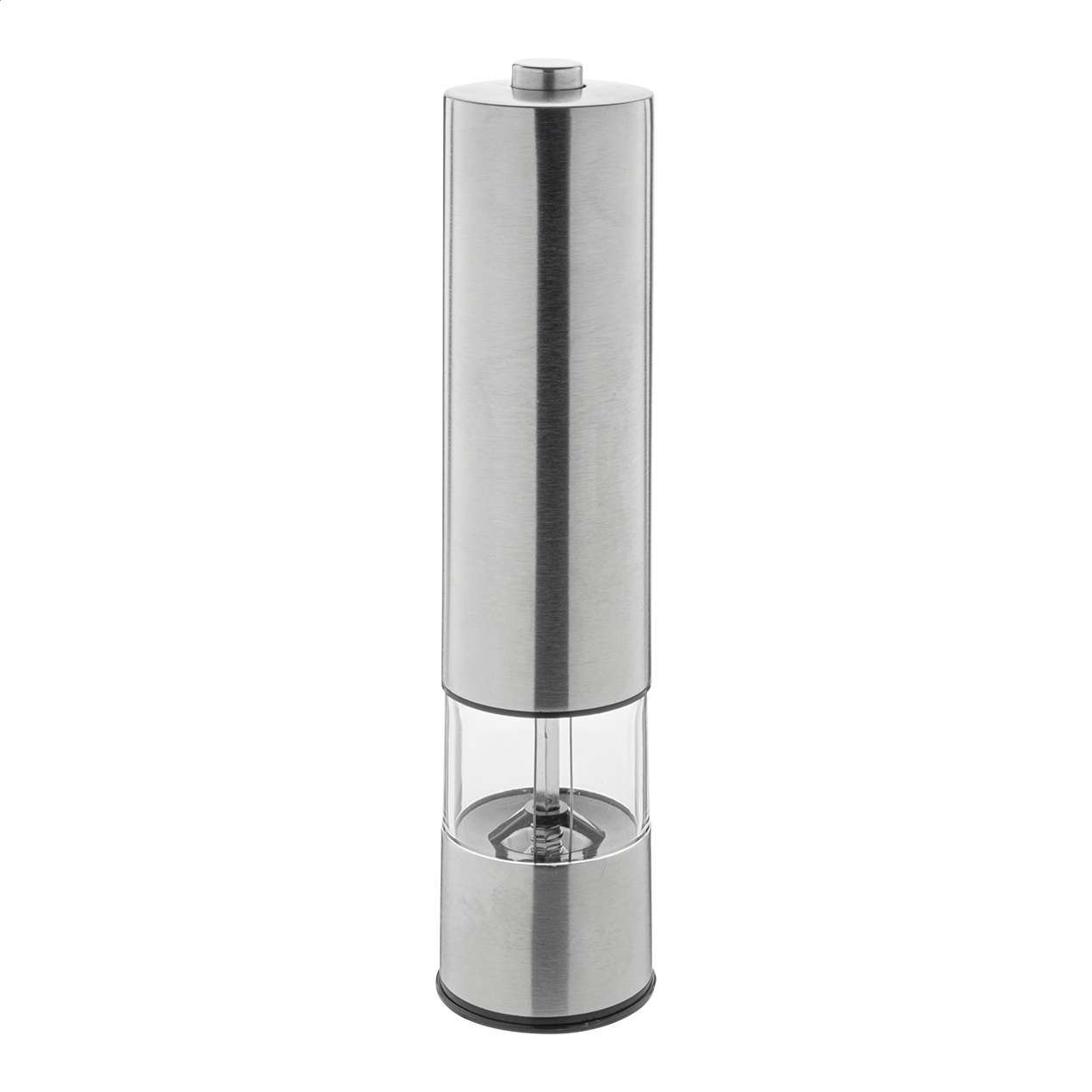 Macina sale e pepe elettrico in acciaio inox con macine in ceramica e luce LED. Funziona con 4 batterie AA, non fornite.