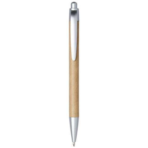 Penna a sfera ecologica con meccanismo a scatto, con serbatoio in carta riciclata e finiture in ABS argentato a spray. Il colore della carta riciclata può variare.Colore inchiostro: Black