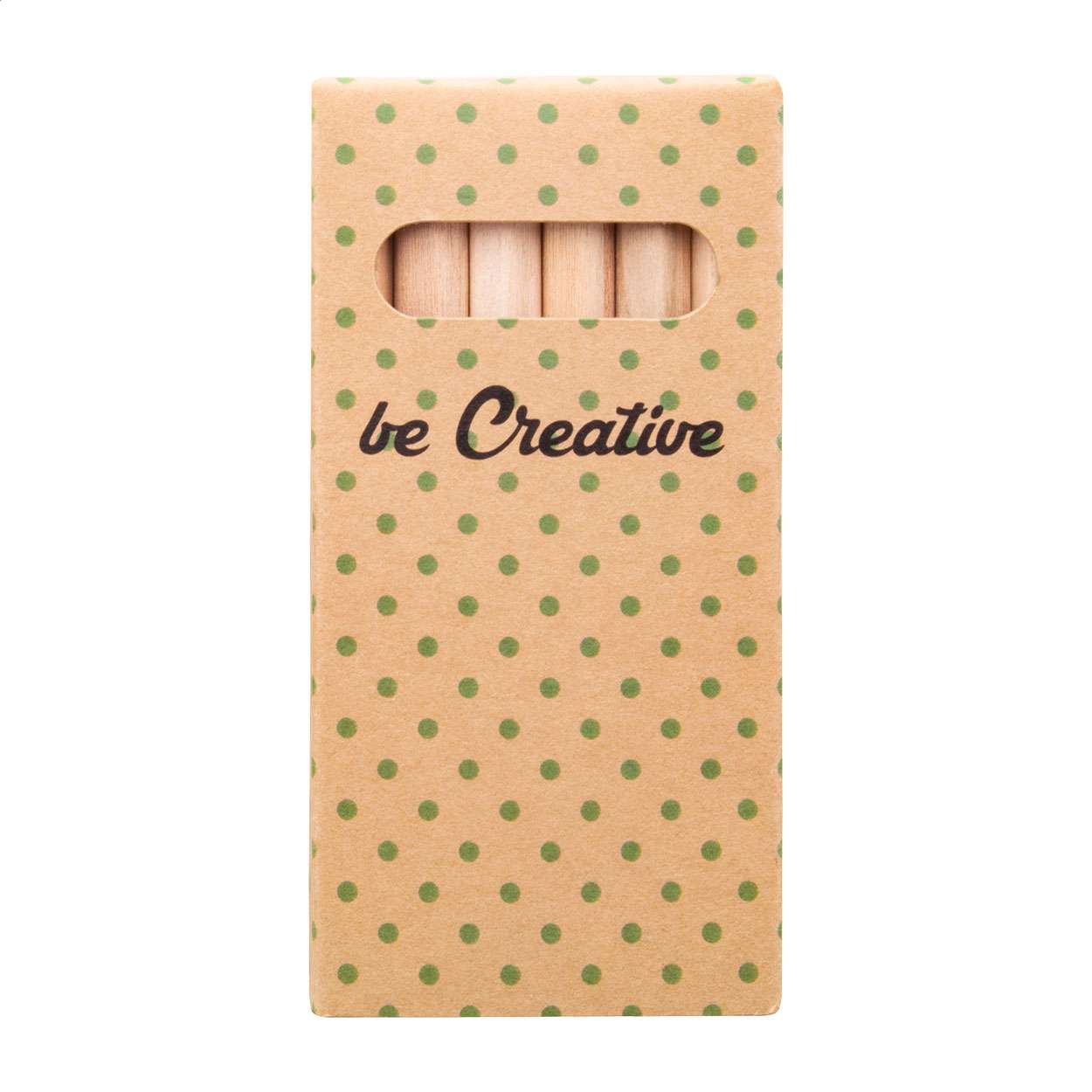 Matite colorate in legno (6 pezzi) in scatola di cartoncino kraft stampato a colori. Il prezzo include la stampa digitale. MOQ: 100 pezzi.