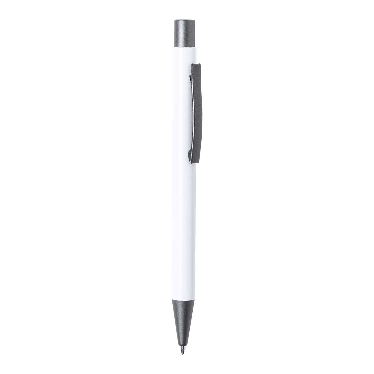 Penna a sfera in alluminio riciclato con finiture color canna di fucile. Con refill blu.