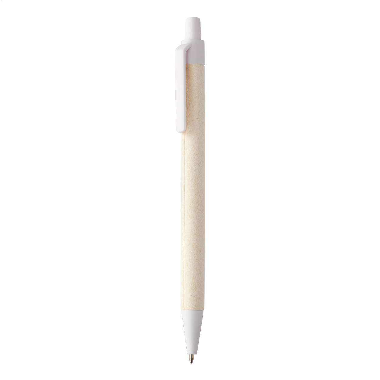 Penna a sfera realizzata con carta di cartone del latte riciclata, parti in plastica ABS riciclata e refill blu.