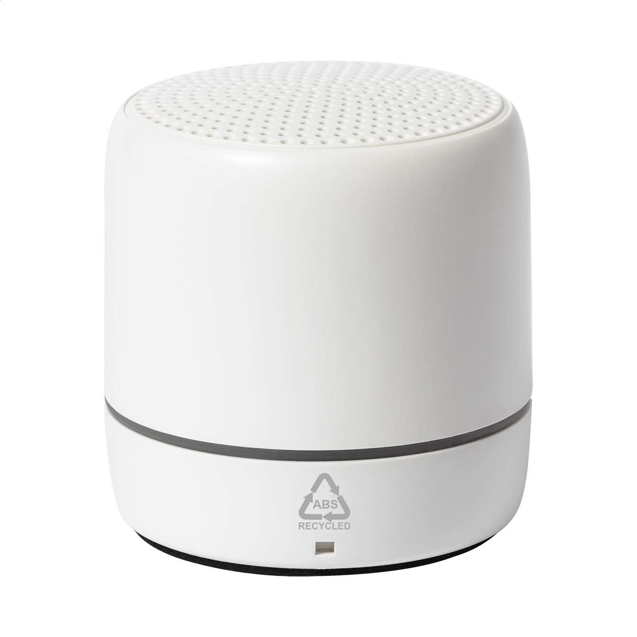 Cassa bluetooth in ABS riciclato con funzione di chiamata in vivavoce e batteria ricaricabile incorporata. Incluso il cavo di ricarica USB.