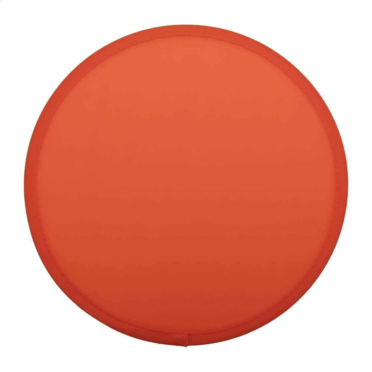 Frisbee pieghevole in poliestere RPET con custodia ed etichetta RPET.