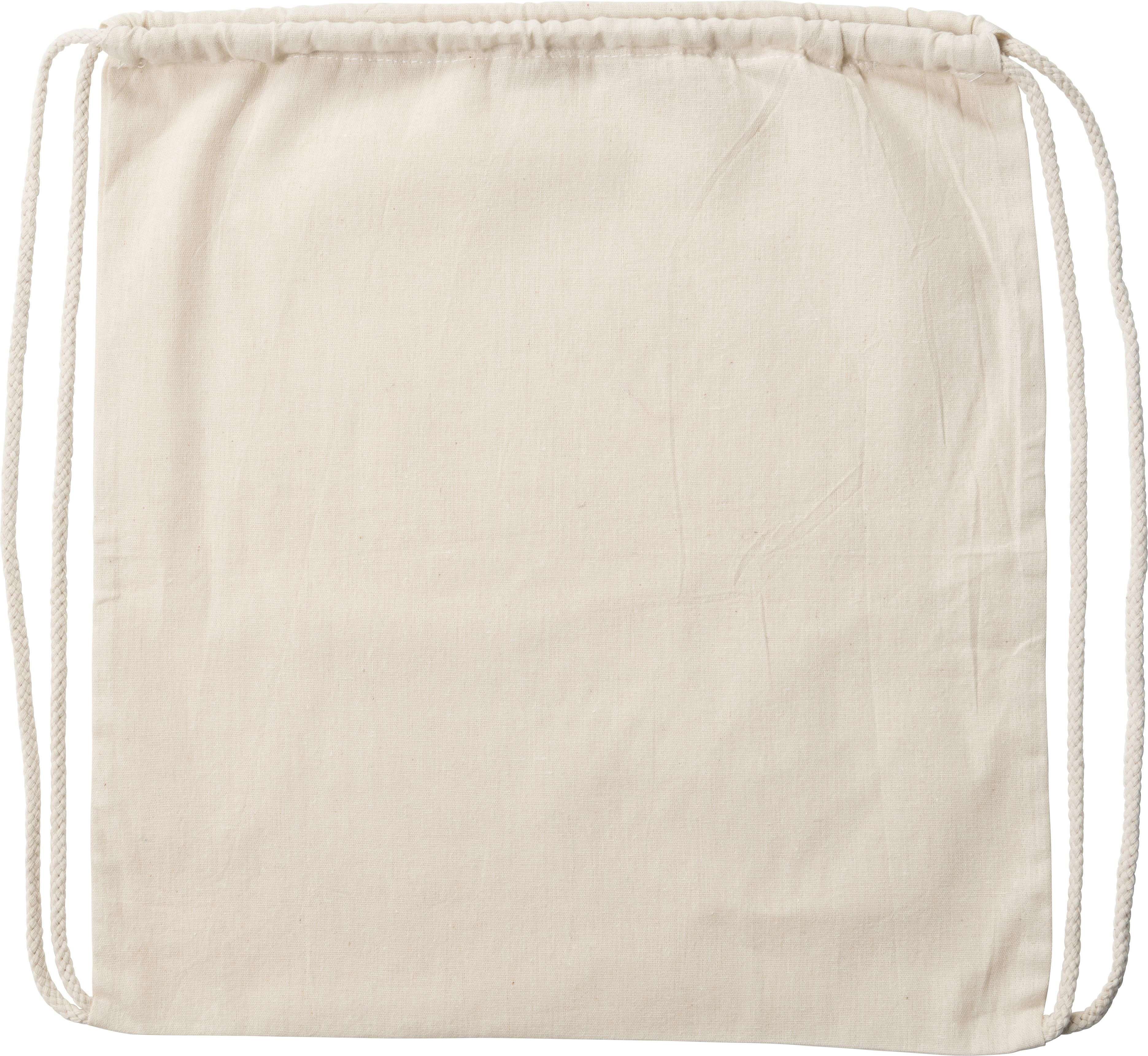Sacca a zaino Dominique con chiusura a coulisse, realizzata in cotone naturale da 120 g/m². Pratica e leggera, è perfetta per l’uso quotidiano o per eventi, con un tocco ecologico grazie al materiale naturale.
