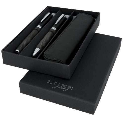 Per un approccio totalmente diverso, questo set di penna a sfera e biro dal design esclusivo è rifinito in fibra di carbonio stampata. Include una custodia protettiva di qualità, confezionata in scatola regalo "LUXE".Colore inchiostro: Black