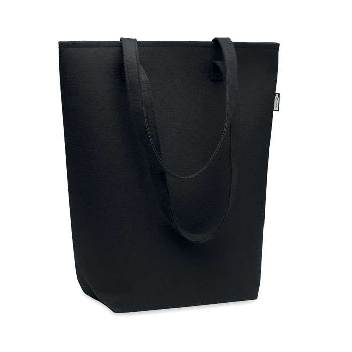 Shopper in feltro RPET da 1 mm di spessore, dotata di manici lunghi per un trasporto comodo. Sostenibile e adatta all’uso quotidiano.