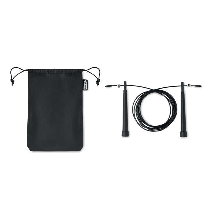 Corda per saltare in pouch in RPET 210D. Lunghezza regolabile.