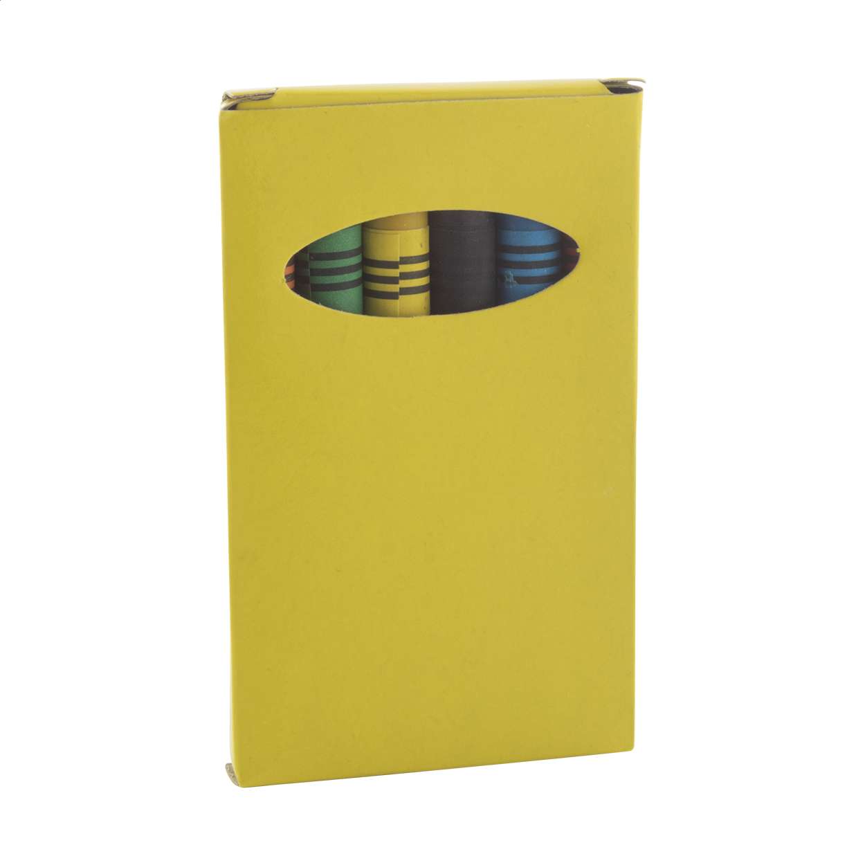 Set 6 pezzi di pastelli colorati confezionati in una scatola colorata di cartoncino.