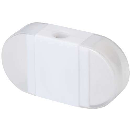 Temperamatite con gomma dotato di tappi trasparenti su entrambi i lati. Dimensione: 6,2 x 3,3 x 1,6 cm.