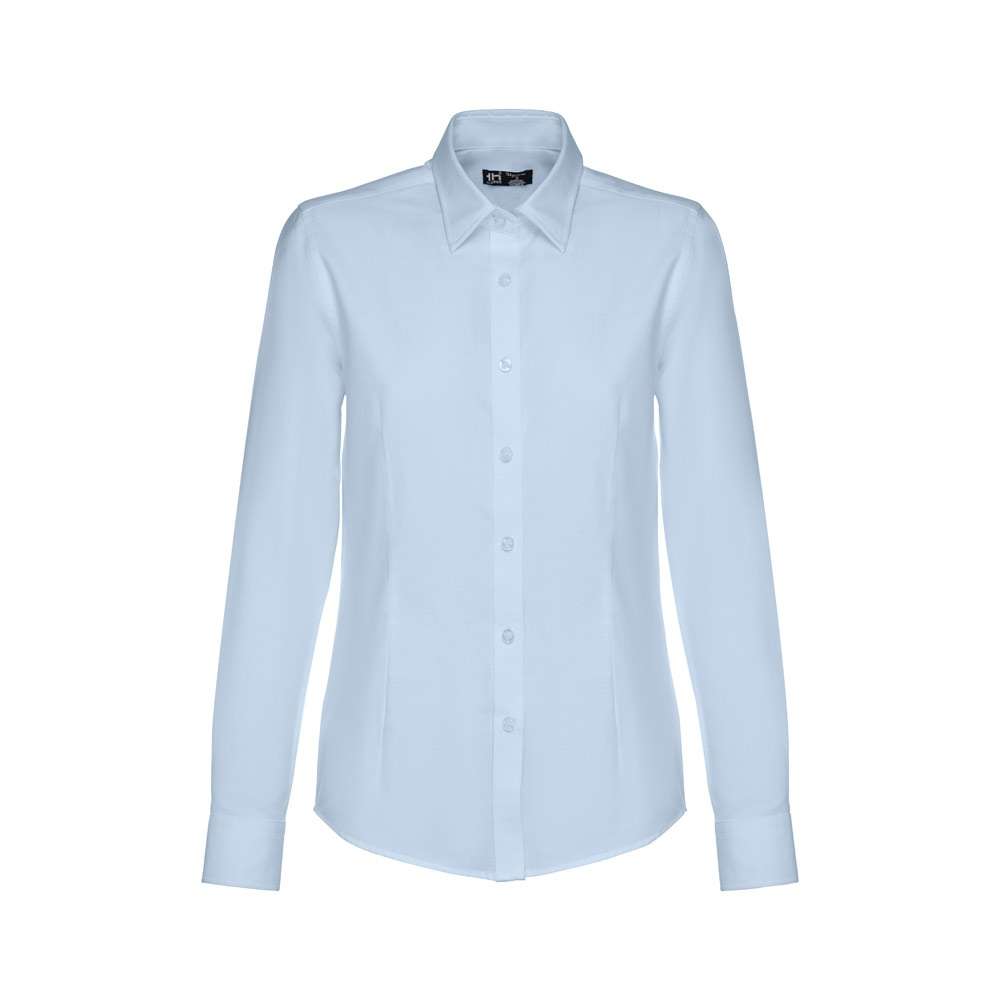Camicia oxford da donna a maniche lunghe in 70% cotone e 30% poliestere (130 g/m²). Polsini regolabili con 2 bottoni e maniche con 1 piega. Vestibilità aderente con 2 pinces posteriori e anteriori e e abbottonatura con 7 bottoni perlati. Taglie: S, M, L, XL, XXL
