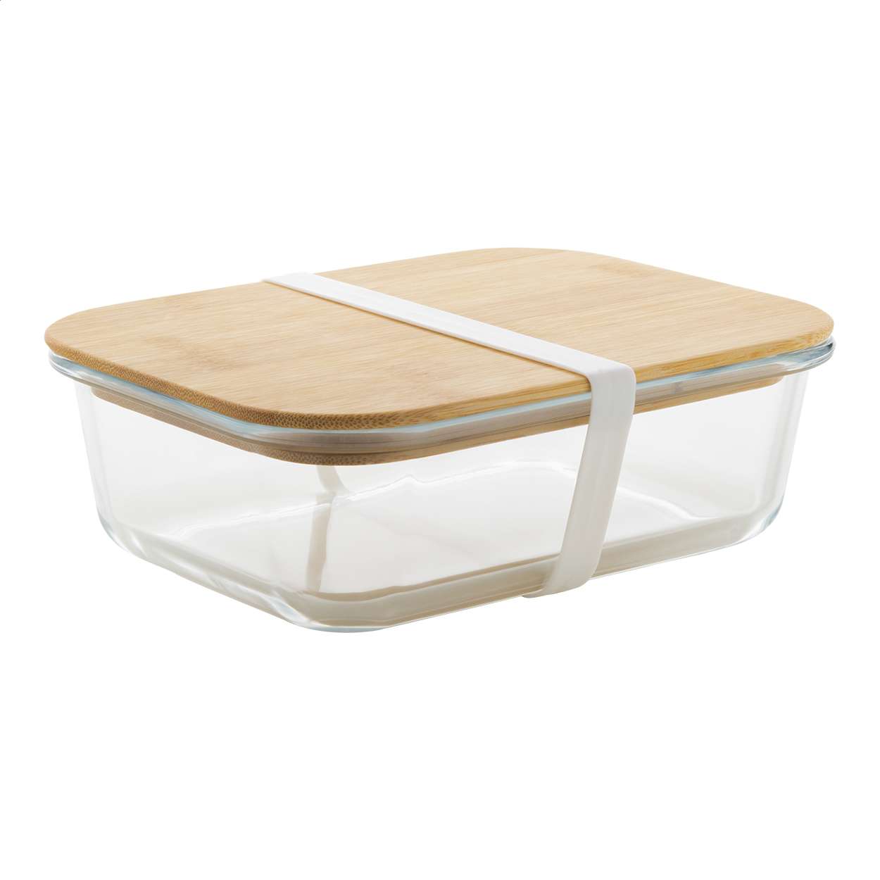 Contenitore per il pranzo in vetro con coperchio in bambù naturale ed elastico in silicone, 800 ml.