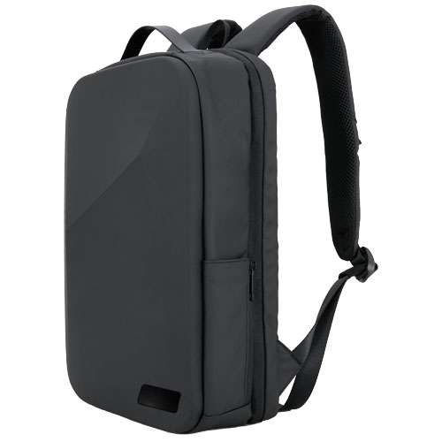 Zaino con power bank integrato porta pc, unisce tecnologia, sicurezza e sostenibilità in un design moderno e funzionale. Realizzato in PET riciclato, integra un power bank da 10.000 mAh a ricarica rapida e un cavo di ricarica 3 in 1 (Tipo-C, iPhone, Micro USB) con logo luminoso. Il power bank è connesso a due connettori esterni: un USB-A per la ricarica dei dispositivi e un Tipo-C per la ricarica del power bank stesso. Pensato per garantire massima protezione, lo zaino è dotato di chiusura a cerniera sicura e schermatura anteriore. All'interno, due scomparti imbottiti proteggono laptop fino a 15,6" e tablet, mentre la cinghia per maniglia telescopica e la tasca posteriore nascosta con sistema di protezione "Smart Security" aggiungono praticità e sicurezza. La batteria è removibile per agevolare i controlli di sicurezza. Realizzato con l’equivalente di 27 bottiglie riciclate, è una scelta sostenibile e innovativa. Fornito in una custodia in tessuto non tessuto.