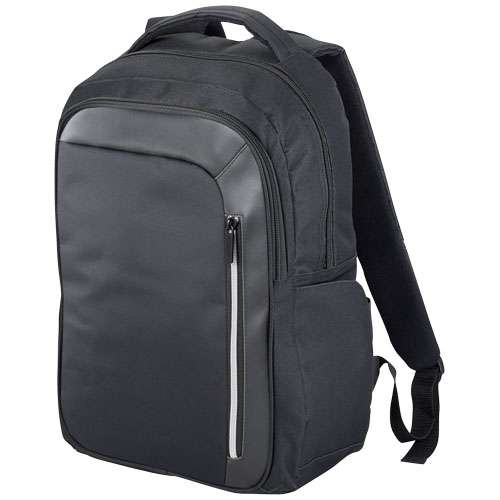 Zaino pc 15 pollici con RFID da 16L, caratterizzato da uno stile moderno ed elegante. Dispone di un’ampia tasca frontale con zip dotata di portachiavi e protezione RFID per carte di credito e passaporti. Il vano principale con chiusura a zip può contenere un computer fino a 15" ed è arricchito da uno scomparto separato imbottito per iPad o tablet. Una tasca verticale con zip consente di riporre piccoli oggetti a portata di mano, mentre le due tasche laterali offrono ulteriore spazio. Spallacci regolabili e imbottiti con inserti in fettuccia, maniglia superiore e fascia posteriore per trolley completano la struttura. Lievi differenze di colore possono verificarsi per via dei coloranti, delle trame e della stampa del tessuto