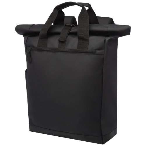 Zaino resistente all’acqua con scomparto imbottito per laptop, spallacci regolabili e imbottiti, ampio vano principale con chiusura a zip e roll-top, completato da due manici pratici per il trasporto.